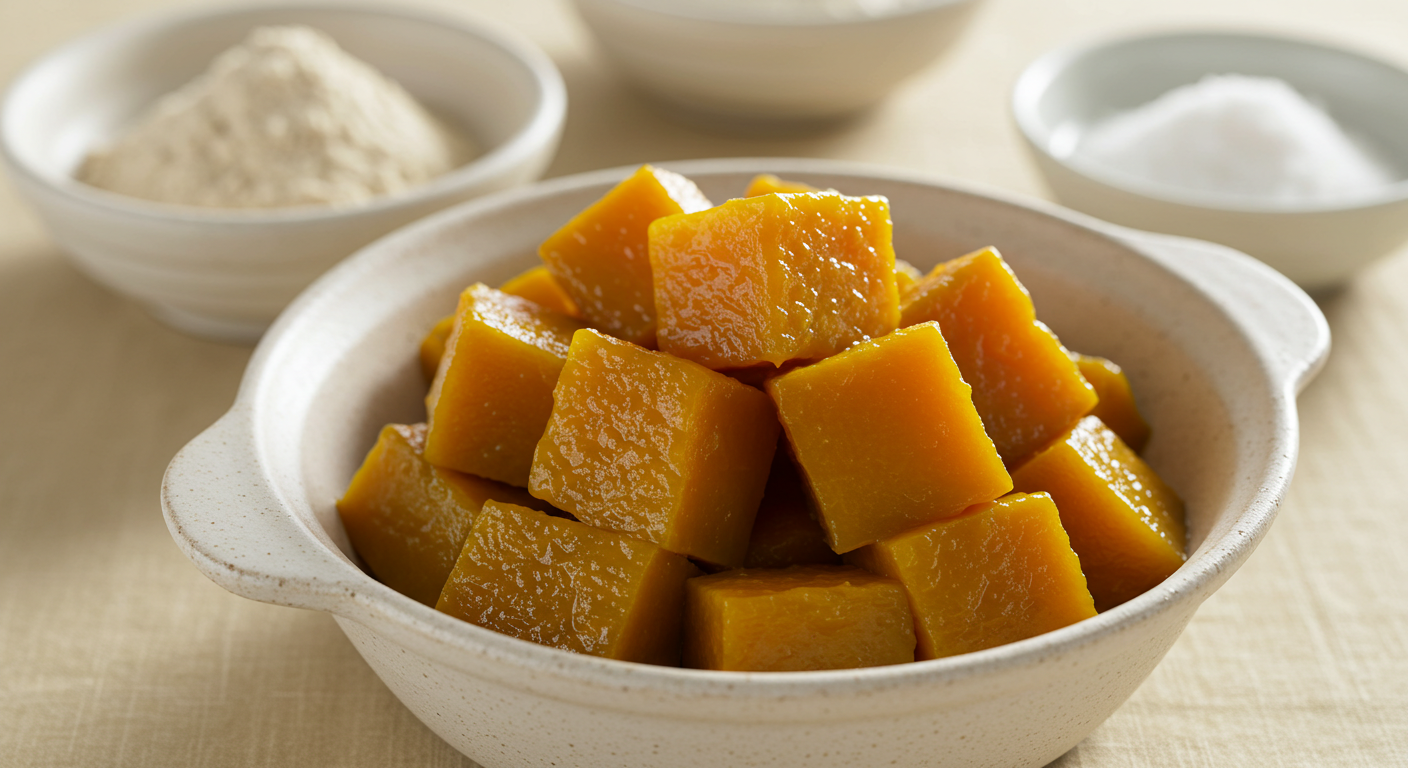 단호박은 자연이 선사한 완벽한 영양 보고입니다. 베타카로틴이 풍부해 면역력 강화에 도움을 주고, 식이섬유가 장 건강을 책임집니다. 무엇보다 자연스러운 단맛이 있어 인공 감미료 없이도 충분히 만족스러운 맛을 낼 수 있죠.