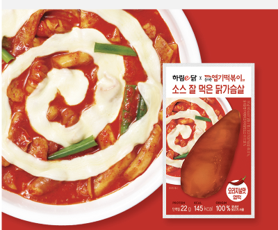 - 제품명: 하림e닭 소스 잘 먹은 닭가슴살/닭다리살 (엽기떡볶이 시리즈)